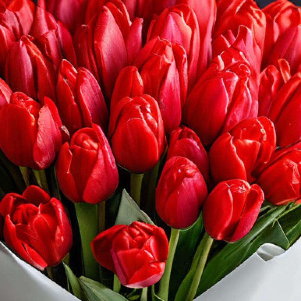 Прекрасные алые тюльпаны в дизайнерской упаковке ❤️ прекрасный весенний букет для любимого человека и отличный букет на 8 марта